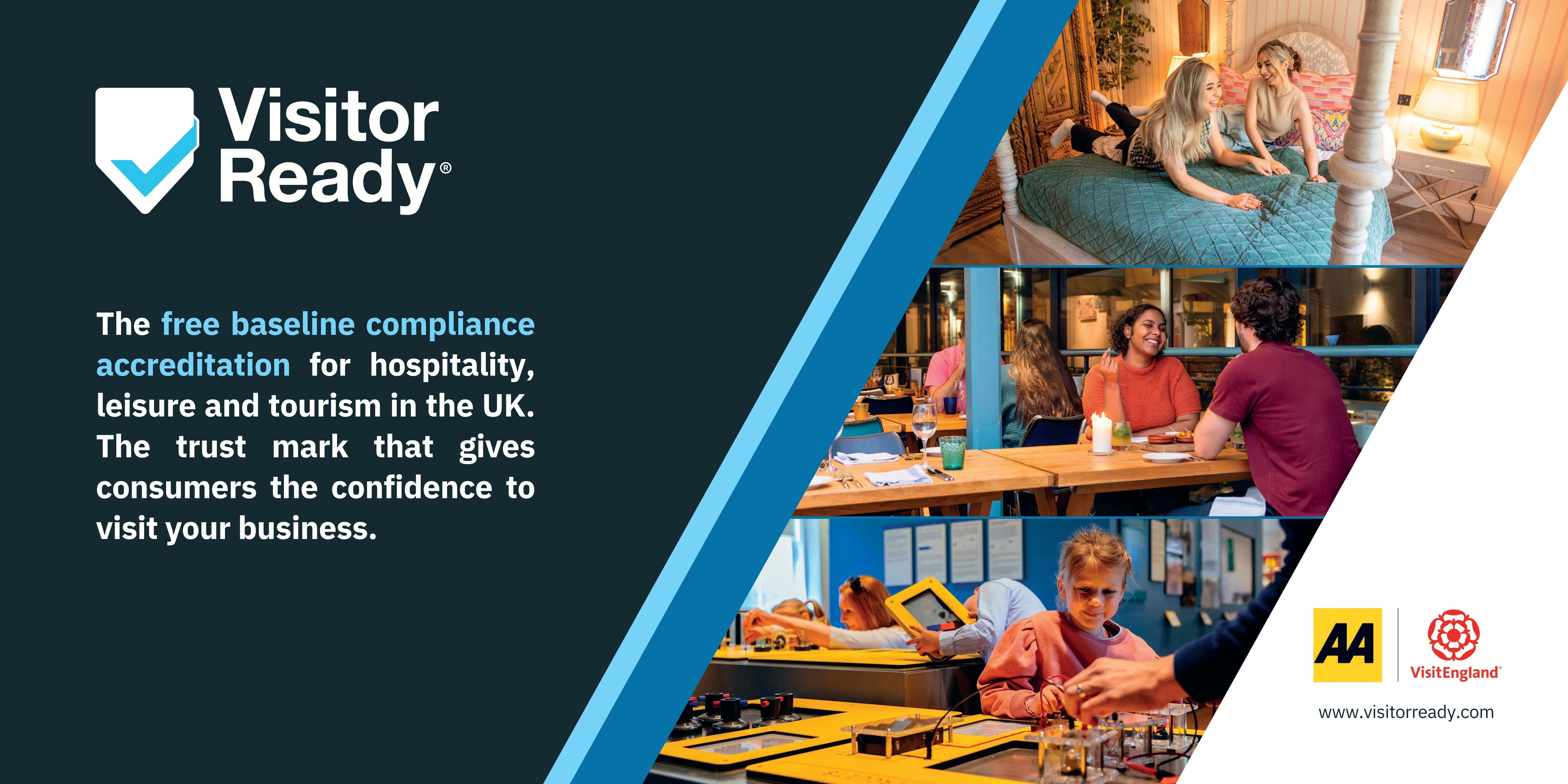 Visitor Ready is a FREE entry-level accreditation, designed for all hospitality, leisure and tourism businesses to demonstrate they are safe, trusted and meet government legislation and industry compliance.